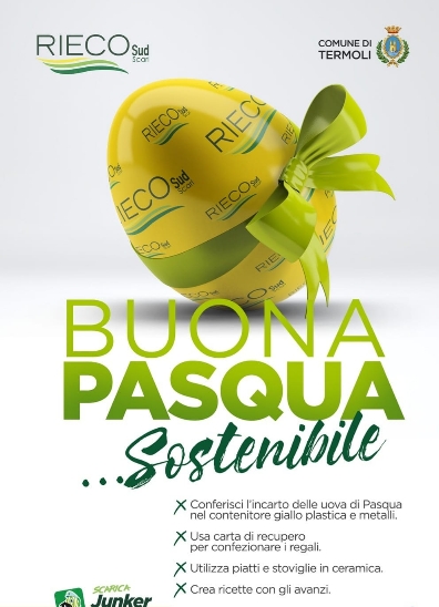 La Rieco Sud augura a tutti i cittadini di Termoli una Buona Pasqua all’insegna della serenità e della sostenibilità, cogliendo l’occasione per ringraziarli ancora una volta per la collaborazione e l’impegno perché i piccoli gesti quotidiani contribuiscono a mantenere pulita e decorosa la bellissima cittadina di Termoli.