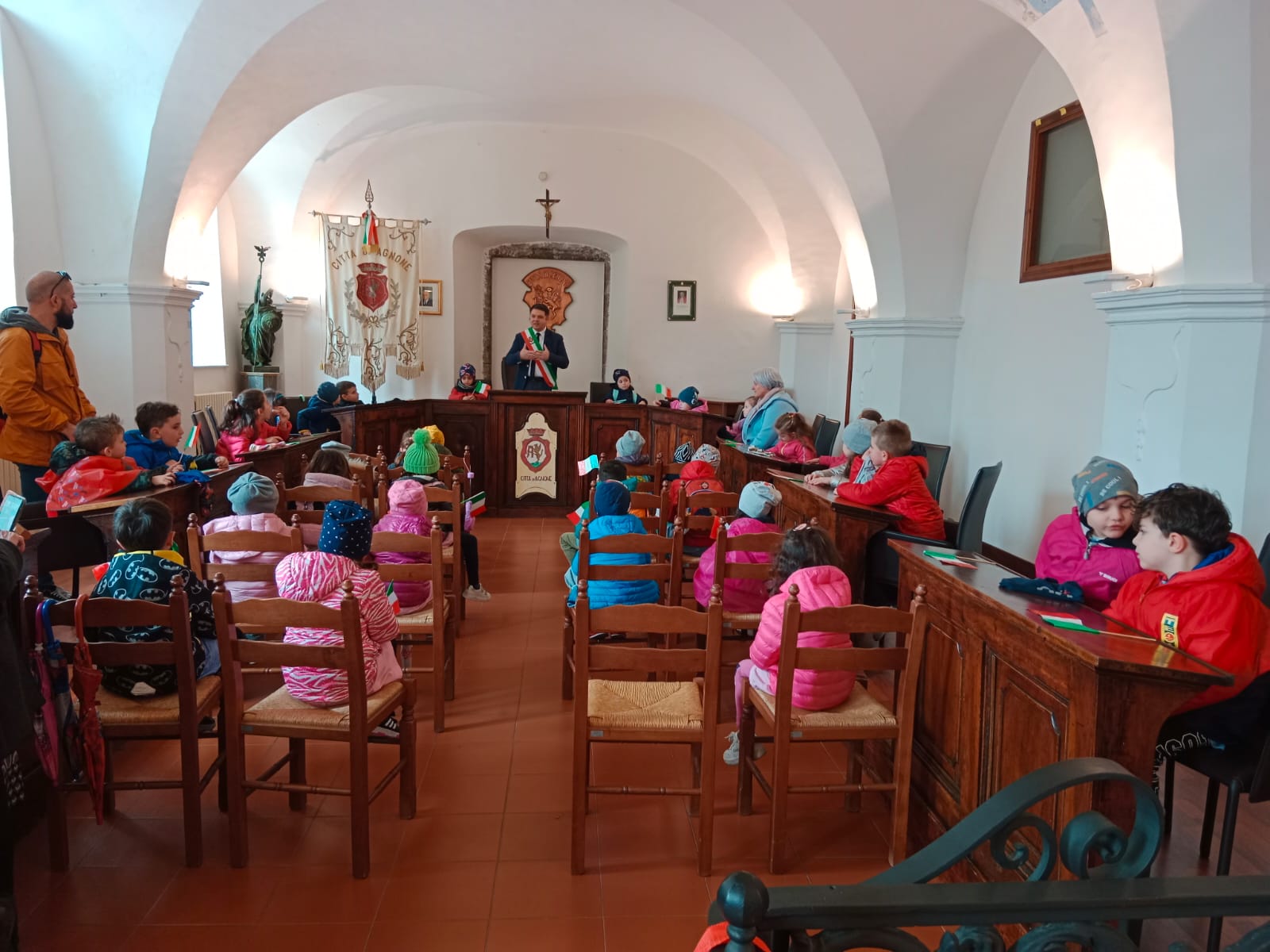 Ultimi giorni tra i banchi per i bambini della scuola dell’infanzia dell’istituto omnicomprensivo “G. N. D’Agnillo” di Agnone. Numerose le attività organizzate dalle docenti che hanno arricchito l’ultima parte del percorso educativo dei piccoli alunni. In particolare, a conclusione del progetto ” Io cittadino del mondo” nell’ambito dell’educazione civica, i bambini dei plessi di “P. Micca” e “Piazza del Popolo” hanno fatto visita al Comune di Agnone per conoscere le figure del sindaco, degli assessori e dei consiglieri. Obiettivo del progetto quello di avvicinare gli alunni alle istituzioni del territorio e ai simboli che li rappresentano. Il primo cittadino Daniele Saia, insieme ai suoi collaboratori, ha accolto con entusiasmo e giovialità i bambini e le loro maestre, spiegando loro l’attività quotidiana che viene svolta in municipio.