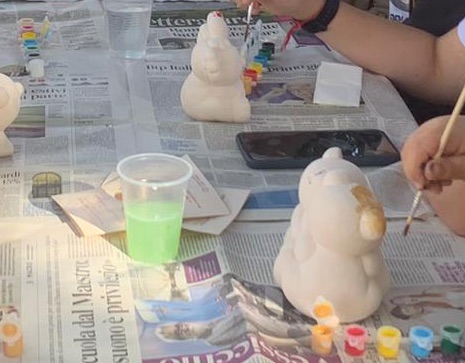 Oltre 30 bambini, ognuno con il proprio kit di decorazione contenete una figura in ceramica, pennello e colori, un grembiule ed il meritato attestato di partecipazione alla bella iniziativa realizzata dalla Fondazione Lene Thun Onlus.