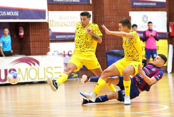 La cronaca – Si presenta subito la squadra  di Palusci con Rodriguez, Oliveira respinge. Tocca poi a Dall’Onder per ben due volte chiamare agli straordinari l’estremo difensore di casa che non si fa sorprendere. Gli abruzzesi spingono e passano: ripartenza di Masi, Baiocchi assiste il 10 sul secondo palo e Oliveira chiude in uscita. L’azione prosegue, Masi va a recuperare palla su Soto e  conclude. Oliveira respinge e Rodriguez a porta vuota manda in rete  per lo 0-1. La reazione della Laborvetro Cln Cus Molise è immediata: rilancio di Oliveira, testa di Ferroni e Cilli manda in corner. Il numero 17 rossoblù poco dopo scambia con Soto e trova sulla sua strada l’estremo difensore abruzzese a chiudere. Scampato il pericolo l’Academy Pescara trova il raddoppio quando Rodriguez si incarica di battere un calcio di punizione. Palla toccata da Baiocchi per il 77, deviazione di Masi e palla in rete. Al tramonto del primo tempo il Pescara sbaglia la rimessa laterale e Di Lisio non trova lo specchio concludendo alto. E’ poi Kullani a provarci da calcio piazzato, sfera respinta da Cilli. Nella ripresa la Laborvetro prova ad alzare i giri del motore: Di Lisio saggia subito i riflessi di Cilli che non si fa sorprendere. La risposta del Pescara è affidata ad uno scambio Baiocchi-Dall’Onder, Oliveira respinge. Ci prova poi Joaozinho per i padroni di casa, sfera fuori bersaglio. Ancora rossoblù pericolosi con un rinvio di Oliveira che coglie la parte alta della traversa. I ragazzi di Sanginario spingono per provare a riaprire il confronto: Soto ci prova dalla distanza, per lui c’è il corner. Kullani prima e Soto poi non riescono a fare breccia nella retroguardia avversaria. ll match si chiude così con il successo del Pescara al Palaunimol. I rossoblù da lunedì cominceranno a pensare al match di Soverato.