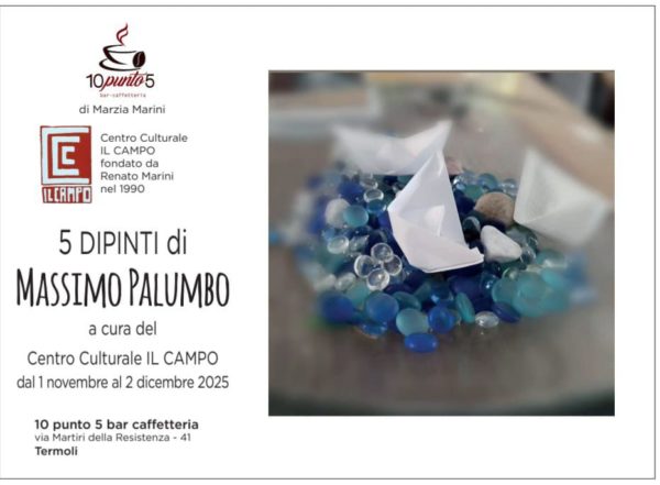 Presentazione di “5 DIPINTI”di Massimo Palumbo. Sabato primo novembre, ore 11.00 presso il Bar Caffetteria 10punto5, a cura di Renato Marini – Centro Culturale il Campo.