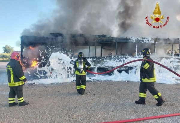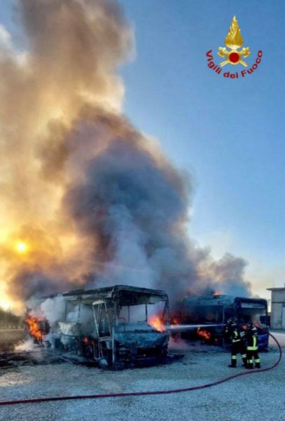 Due autobus distrutti dalle fiamme. E’ accaduto questa mattina intorno alle sette a Ururi. I due mezzi, uno a gasolio e uno a metano, erano fermi su un piazzale del paese. Sul posto sono intervenuti i Vigili del fuoco con mezzi e uomini da Santa Croce di Magliano e da Termoli. Le operazioni di spegnimento e di messa in sicurezza dell’area si sono concluse in un’ora e le fiamme sono state domate anche mediante l’impiego di schiuma estinguente. Sul posto sono intervenuti anche i Carabinieri della Compagnia di Larino che indagano per acceretare le cause del rogo.