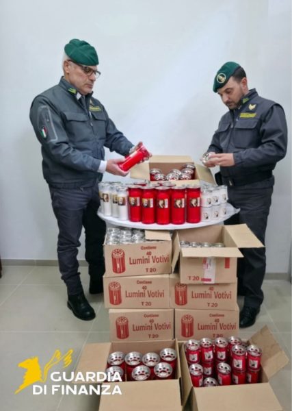 In particolare, nel corso dell’ispezione, i militari hanno trovato, esposti per la vendita, ceri liturgici di varie dimensioni, con l’immagine di San Pio da Pietrelcina, non conformi alla normativa a tutela del consumatore perché senza le indicazioni previste dalla legge in materia di sicurezza. Il titolare della ditta è stato segnalato alla Camera di Commercio per le responsabilità di carattere amministrativo, che prevedono una multa superiore ai mille euro.