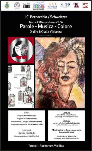 La Scuola Secondaria di I grado “Bernacchia/Schweitzer” promuove un’iniziativa speciale che coinvolge tutti gli alunni delle classi terze in un percorso di espressione artistica e culturale dedicato al tema della violenza sulle donne. Attraverso le parole, la musica e la pittura, i ragazzi diventano protagonisti di un dialogo che unisce scuola, associazioni del territorio e figure del mondo culturale, con l’intento di sensibilizzare le nuove generazioni al valore del rispetto e della dignità della persona, promuovere l’arte e la creatività come strumenti di consapevolezza e cambiamento sociale, rafforzare il legame tra istituzioni, famiglie e comunità e anticipare la Giornata internazionale contro la violenza sulle donne con un momento di riflessione condivisa.