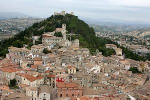 Da questa cartolina natalizia, è assente il simbolo della città. Il vecchio Castello Monforte, in cima alla collina resta spento e chiuso al pubblico, nonostante i lavori di restauro del primo lotto siano da qualche tempo terminati.