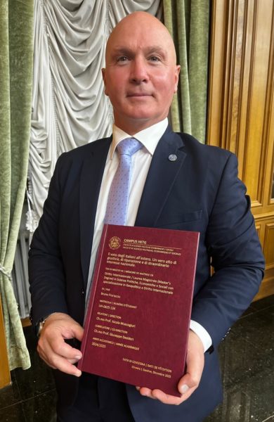 “Un cammino che parla di confini osservati per comprenderli, di equilibri analizzati per immaginarli più giusti, di diritto come linguaggio di dialogo e non di distanza -ci racconta Bruno- in un tempo segnato da fratture globali e nuove sfide internazionali, questo traguardo rappresenta una scelta di responsabilità, studio e visione.