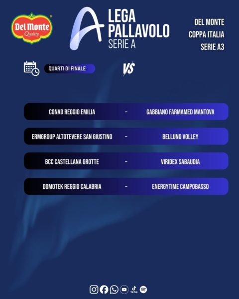 Nel frattempo, sul versante degli EnergyTime Spike Devils Campobasso, si guarda con soddisfazione alla prima metà del percorso che ha portato con sé un terzo posto al giro di boa nel Girone Blu della Serie A3 Coppa Italia con sedici punti conquistati, sei successi su nove gare disputate ed un terzo posto, sinonimo di accesso alla Del Monte Coppa Italia A3 con primo turno per il secondo weekend di gennaio al PalaCalafiore sul rettangolo di gioco del Reggio Calabria.