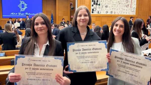 L’eccellenza della componente studentesca e neolaureata dell’Università del Molise ancora una volta riconosciuta e anche premiata con una cerimonia alla Camera dei Deputati. Barbara Pia Trotta, Giovanna Pasquale e Chiara D’Amico, neolaureate magistrali in Letteratura e Storia dell’arte al dipartimento di Scienze umanistiche, sociali e della formazione, hanno ricevuto il premio ‘America giovani’ conferito dalla Fondazione Italia-Usa a testimonianza di un percorso accademico di alto profilo che ha accompagnato le tre
