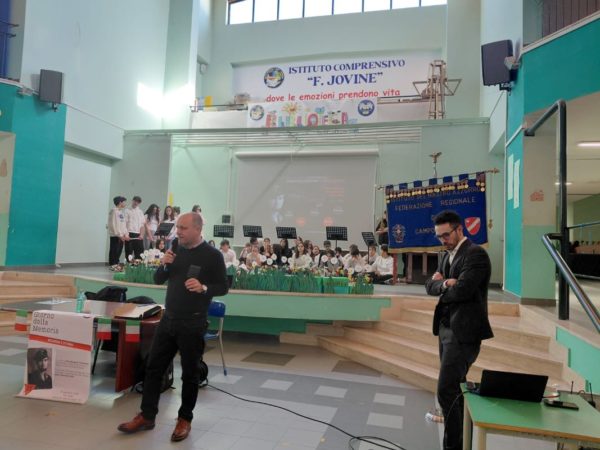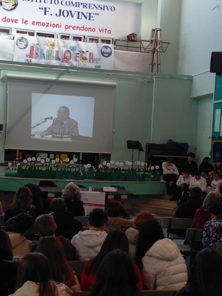 Al termine dell’incontro, sul palco dove si sono esibiti anche gli alunni, è stata deposta una riproduzione di una pietra d’inciampo dedicata a Nicolangelo Ciamarra.