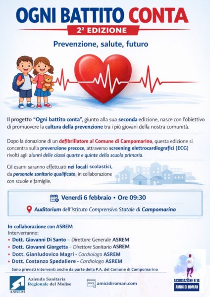 Prende il via a Campomarino la seconda edizione del progetto “Ogni battito conta”, iniziativa di prevenzione cardiovascolare promossa dall’Associazione n.14 – Amici di Roman