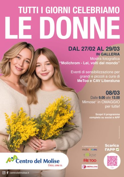 Entrando nel vivo l’8 marzo con una mattinata dedicata alla Giornata Internazionale della Donna attraverso la distribuzione di mimose e flyer informativi contenenti i numeri utili di pronto intervento per le donne vittime di violenza che hanno necessità di accedere a tutti CAV del Territorio regionale; proseguirà poi con l’iniziativa di MeeToo il 14 marzo (ore 17:00-20:00) con “Quello che ho nel cuore”, un laboratorio creativo e narrativo in cui i più piccoli potranno raccontare l’amore tramite parole e disegni, per poi continuare nel fine settimana del 21 marzo (ore 17:00-20:00) e 22 marzo (ore 10:00-12:00) con la campagna di MeeToo “Io ci metto la faccia”, che inviterà i passanti a testimoniare attivamente il proprio impegno contro la violenza di genere attraverso un’attività di photobooth all’interno di una cornice simbolica.