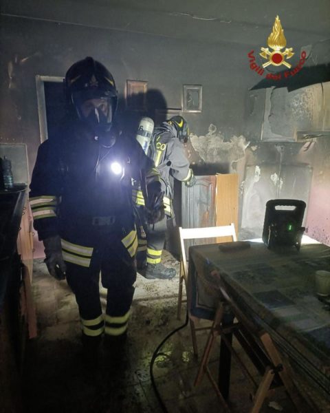 L’intervento dei pompieri ha consentito di circoscrivere l’incendio ed evitare la propagazione delle fiamme al piano superiore e agli edifici adiacenti. Sul posto erano presenti anche i Carabinieri. Nessuno é rimasto ferito.
