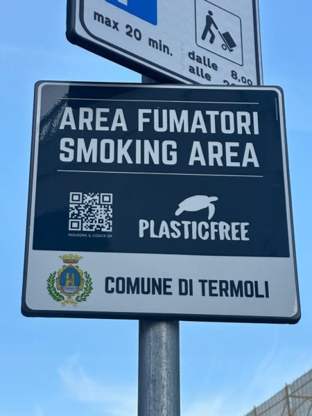 Un cartello per identificare l’area “fumatori”, i loghi del Comune di Termoli e di Plastic Free con un Qr code che rimanda al sito dell’associazione ambientalista dove sono illustrate tutte le finalità della Onlus. E poi un simpatico contenitore in metallo a forma di sigaretta dove gettare i ”mozziconi” e con una superficie esterna dove spegnere le sigarette.