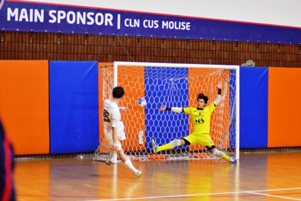 La cronaca – Ci provano subito i padroni di casa con Oriente, conclusione deviata in calcio d’angolo. La risposta abruzzese arriva grazie al break difensivo di Di Loreto, Colavita chiude in uscita. Il match si sblocca grazie ad Antonio Sapio che riceve palla dal portiere Colavita e deposita in fondo al sacco. Gli ospiti impattano con un tiro dalla lunga distanza del portiere Montagliani che beffa Colavita e poi mettono la freccia grazie a El Hazhouzi. La Laborvetro Cln Cus Molise, incassato il colpo, i padroni di casa reagiscono subito. Cannone costruisce per Francesco Sapio che finalizza e ristabilisce la parità. Prima del riposo il Cln Cus Molise si porta in vantaggio con una conclusione di Oriente, il velo di Cannone inganna il portiere e la palla si infila in rete e poi cala il poker con Leardi.