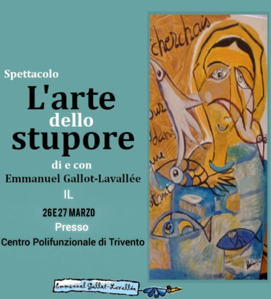 A Trivento va in scena lo spettacolo l’Arte dello stupore. Sono previste due giornate, il 26 e il 27 marzo, presso il Centro polifunzionale di Trivento, con lo spettacolo “L’Arte dello stupore”, con Emmanuel Gallot- Lavallée. “L’Arte dello Stupore” è un progetto artistico e formativo del maestro francese Emmanuel Gallot-Lavallée, incentrato su mimo, clown e meraviglia. L’esperienza esplora la “presenza fragile”, invitando a riscoprire uno sguardo ingenuo e stupito sul mondo, simile a quello dell’infanzia, spesso presentato attraverso workshop di teatro e la presentazione del libro “Il Circo degli Anziani”. Il 26 marzo, alle ore 19.00 c’è la presentazione del programma: l’Arte dello stupore …e del meravigliarsi, con la presentazione del libro: Il Circo degli anziani. Per il giorno 27 marzo, alle ore 15.00, c’è la lezione di teatro ai ragazzi (fascia d’età 11/16 anni); a partire dalle ore 17.00 spazio alla fascia adulti.