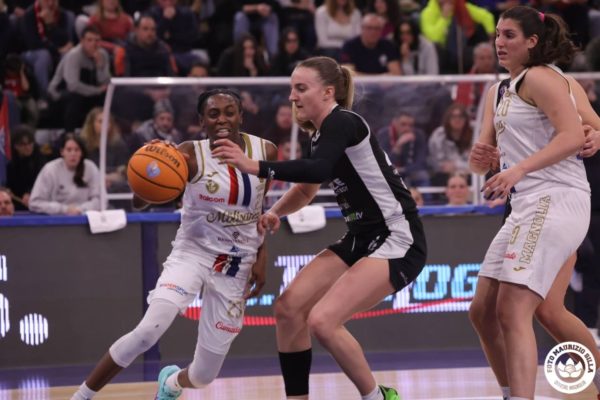 SOTTO LE ALI DI MARIA Roseto prova a dare uno strattone al rientro dagli spogliatoi, ma la tripla di tabella ed il canestro da sotto di Miccoli sono un piccolo arcobaleno per le rossoblù, che, con Simon, arrivano sino al meno uno (33-34). La tripla di Giacchetti vale il 36 pari. Roseto mette nuovamente la testa avanti, ma Miccoli con una tripla sigla il primo vantaggio di serata per le magnolie (39-38). L’Arena alza i decibel per incitare il ‘quintetto operaio’ dei #fioridacciaio. Madera con due tiri liberi regala un possesso pieno (41-38) alle campobassane. Roseto non ci sta e si riporta avanti (41-42). Ancora Miccoli non ci sta, raggiungendo la doppia cifra, ma Roseto risponde immediatamente e va sul +4 (43-47).