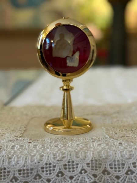 “L’idea è nata grazie a mia mamma, che da sempre ha la tradizione e devozione a San Giuseppe e in considerazione del fatto che c’è sempre tantissima gente che visita gli altari. Ho deciso insieme al Presidente dei Cavalieri di San Pio, Valerio Prosperi, di esporre la reliquia di Padre Pio, che è un pezzettino della benda del costato che è ancora macchiata dal sangue di Padre Pio. Abbiamo deciso di esporla per farla vedere al pubblico , di conseguenza, penso che sia stata una buona idea. Non l’abbiamo molto pubblicizzata, perché riguarda la devozione, – ha continuato Achille- in questo caso il passaparola è quello che più fa effetto.”