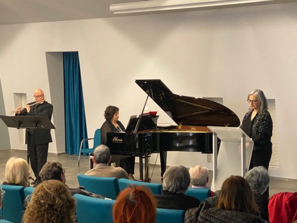 In occasione della festa della donna dell’8 marzo, in una particolarmente suggestiva matinée, il trio composto da Giuseppe Nese, Gabriella Orlando e Ivonne Grimaldi ha presentato “Le blanc et le noir”, concerto-spettacolo dedicato a Coco Chanel. Il progetto ha intrecciato musica e narrazione in un percorso evocativo che ha attraversato le atmosfere di Erik Satie, Claude Debussy e Frédéric Chopin, fino alla chanson francese di Édith Piaf. Nese, flautista pluripremiato a livello internazionale, ha offerto un fraseggio elegante e luminoso, mentre Orlando ha costruito un tessuto pianistico ricco di colori. La voce recitante della Grimaldi ha dato coerenza drammaturgica, trasformando il concerto in un’esperienza immersiva, un racconto sonoro e teatrale capace di intrecciare musica e narrazione con un risultato evocativo e poetico.