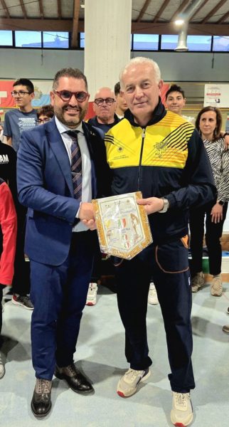 Nel corso della visita, il presidente del club perugino Luca Rugini ha consegnato un gagliardetto al presidente della FIB Molise Giuseppe Formato e, simbolicamente, anche al Ristorante Paparella, per essere recapitato a Franco, già atleta e presidente regionale tra gli anni ’80 e ’90.
