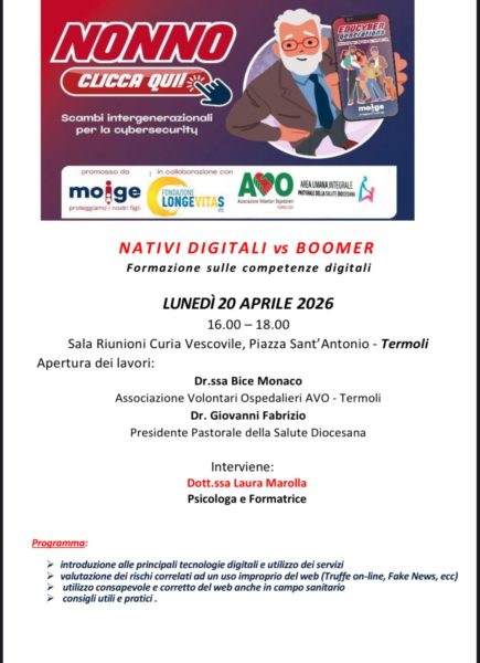 Un convegno presso la sala riunioni Curia Vescovile, a piazza sant’Antonio a Termoli, “Nativi digitali vs Boomer”.